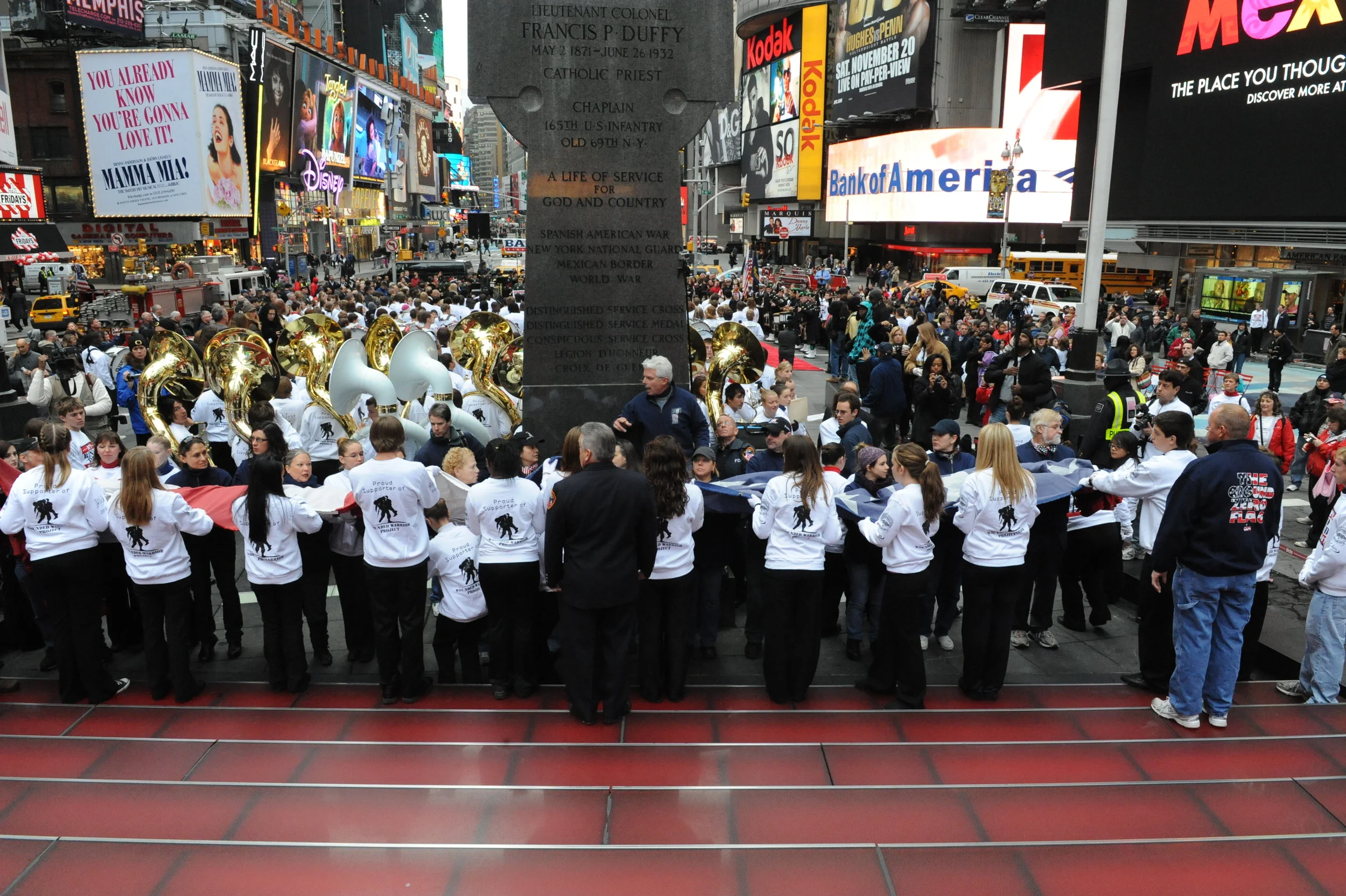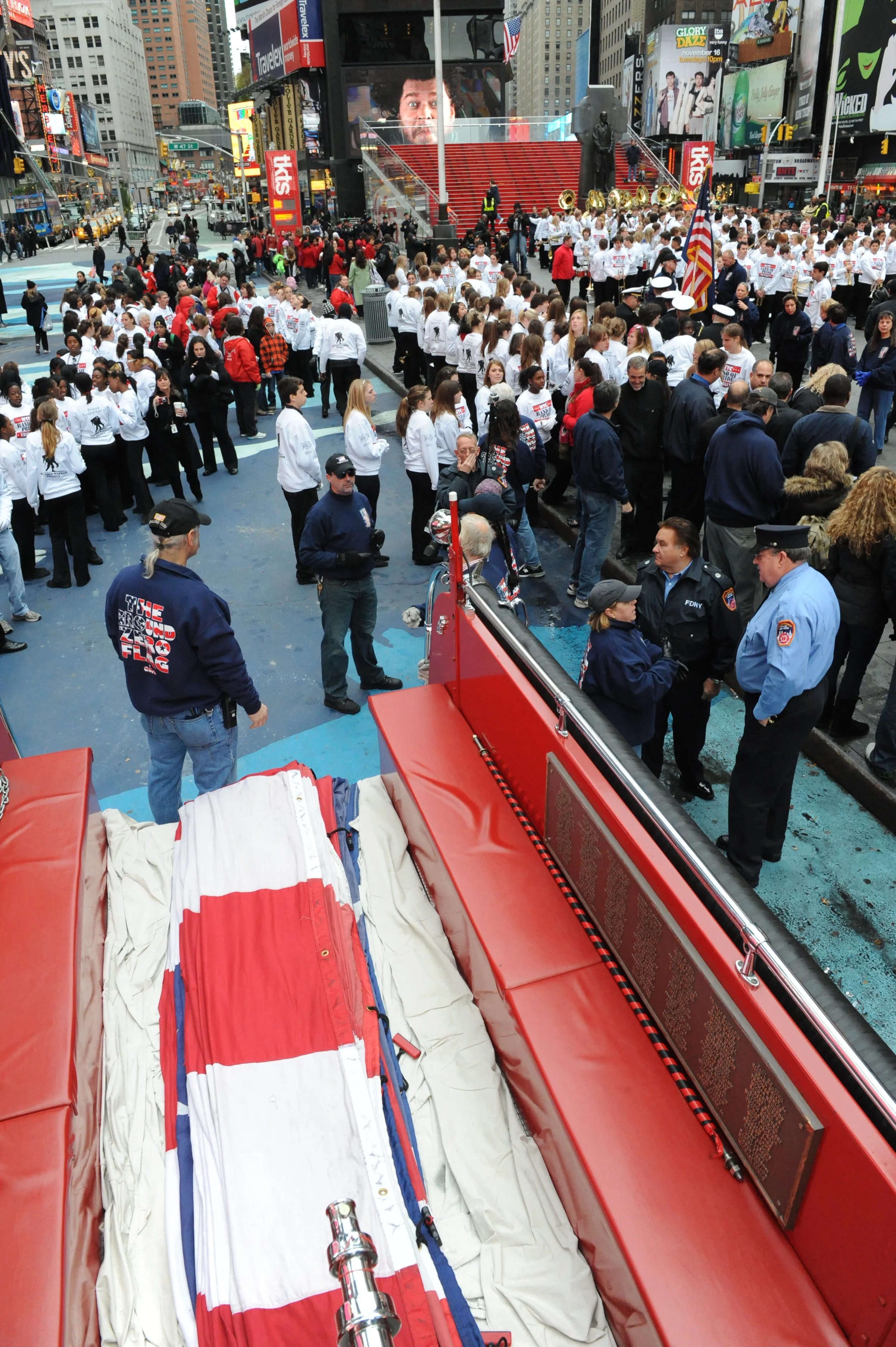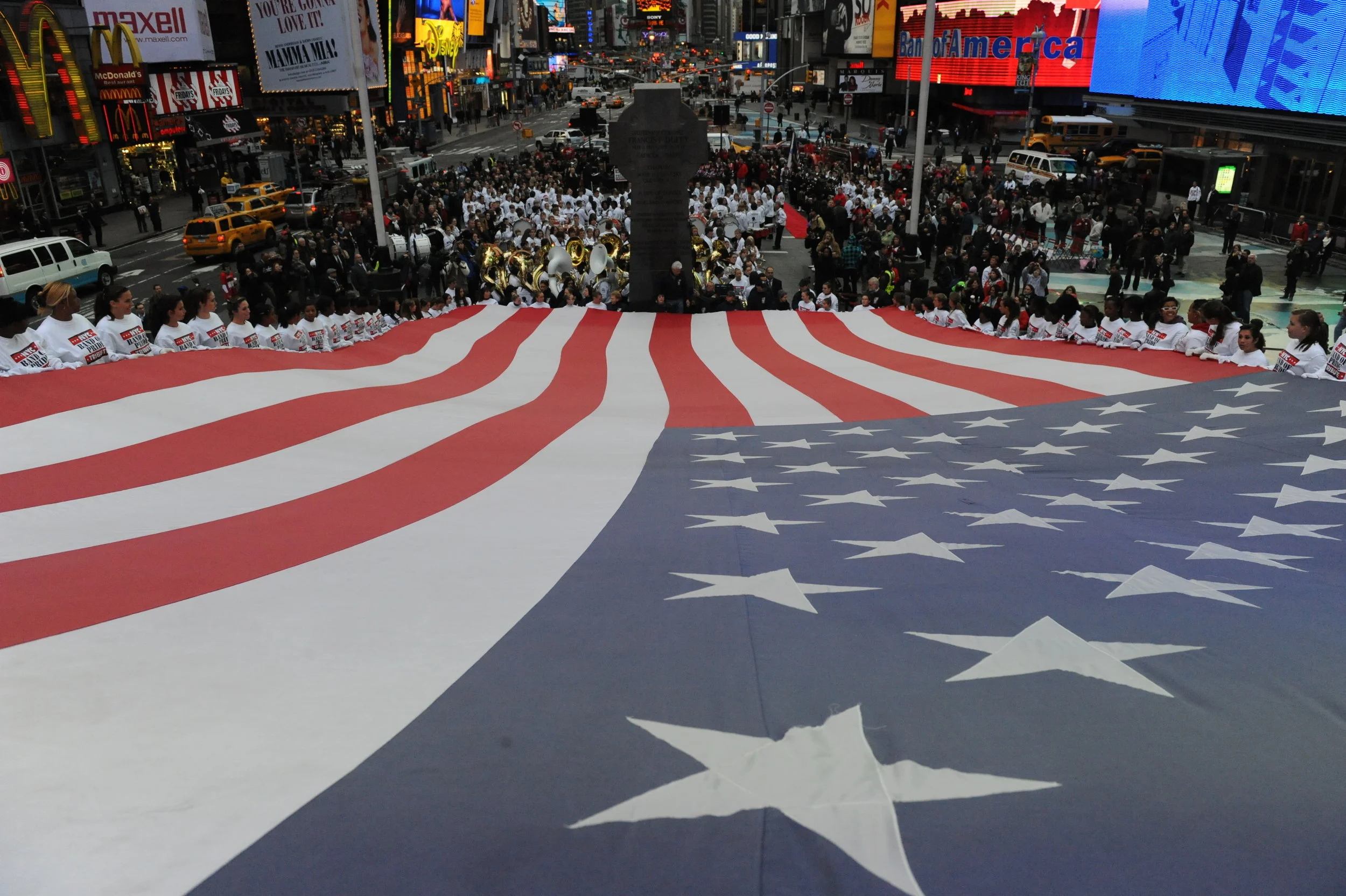 November 10th many of our group of Ground Zero volunteers and family members gathered to remember our nation's veterans on in The Bronx, New York City. This year due to the closeness of the New York City Veterans Day Parade and The Bronx Veterans Day Parade, many of our community members were unable to attend this parade. However, our military shows up rain or shine, no matter what occurs and so must we. Although we were unable to carry our signature 60' X 30'Flag (like our one from Ground Zero) due to the lack of people, as the saying goes: "the show must go go on".